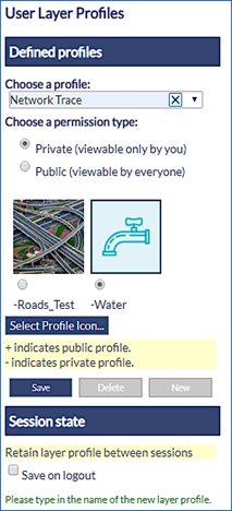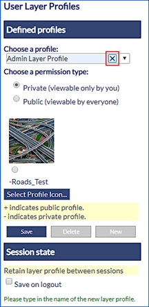 When selecting this tool from the main toolbar, the user layer profiles will display a list of saved user profiles by default there are two options default and preset layer. Users can save custom layer states by clicking on the New button and typing a name for this profile and then selecting Save.
