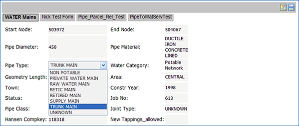- When the user toggles between tabs, in this case Parcels, the user can click on the Parcel to Water Services tab , which is on the right hand side of the detail view.