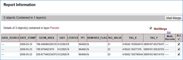 After having selected this tool, click on a location on the map. A Report Information window will then appear displaying information about all the map features that are located within two meters from that point, including features on all underlying layers.
