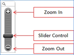 The Zoom Slider Control allows the user to navigate around the map using the pan and zoom controls. Using the Slider Control the user can zoom in by sliding the control up towards the