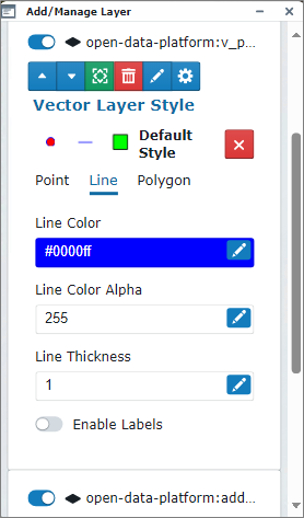at the top of the Add/Manage Layer pane to switch the layer on/off