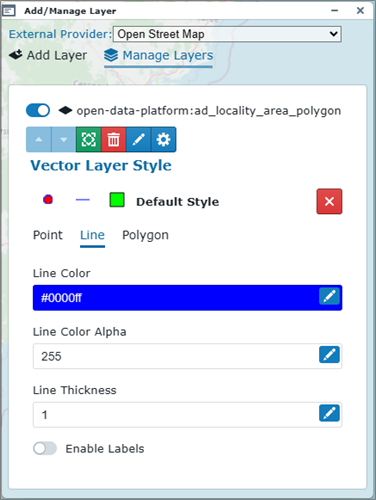 - On the Add/Manage Layer pane, select the drop-down list next to the External Provider.