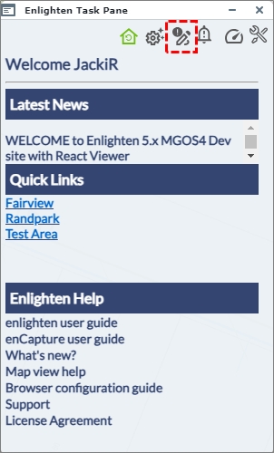 When the Bookmarks icon is selected, the Defined bookmarks options will load as a floating pane on the user’s screen which is a new built-in function on enlighten. This floating pane allows the user to be dragged and placed at a convenient location as per the user’s preference. This pane can also be minimized or expanded, thus keeping this active whilst the user continues with other actions on enlighten. Lastly, this floating pane can also be made transparent thereby enabling the user to dock this anywhere on the map without obstructing other panes.