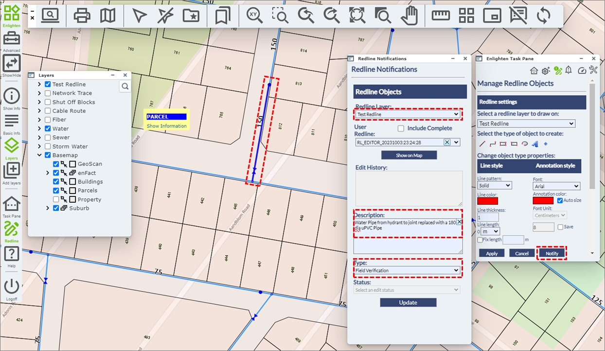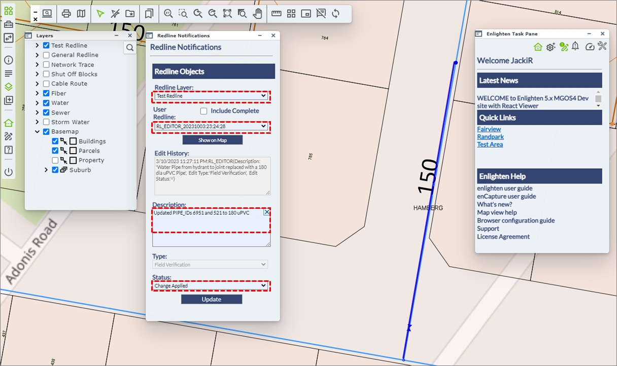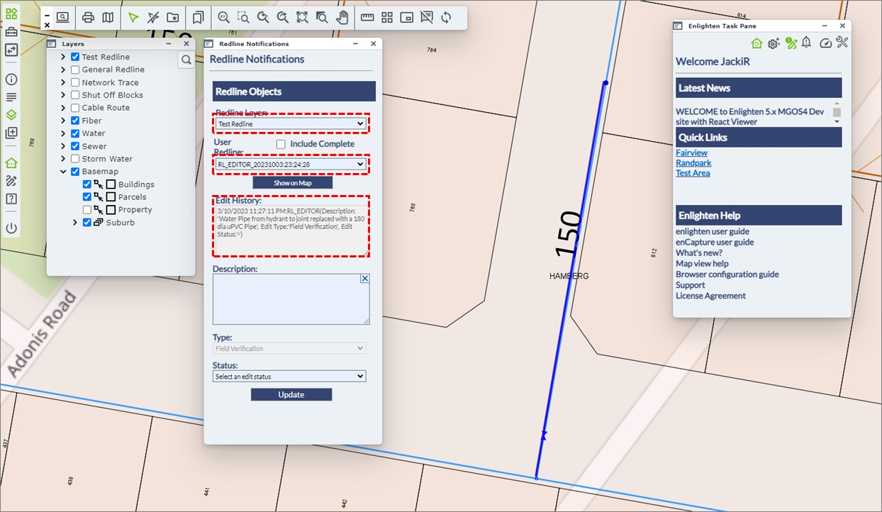 All external layers added during the enlighten session are temporary and are removed from the Layers pane once the enlighten session is closed. These external layers are also not available for inclusion in the enPlot Plot Engine function available on the enlighten Toolbar, however, the layers are included when doing a Quick Plot since the Quick Plot function uses whatever is currently displayed on the screen to create a print screen plot.
