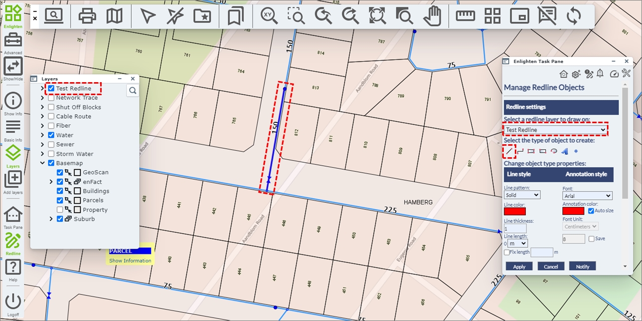 By setting scale dependencies on each layer, map loading speed is improved, and a more effective display of map features is provided. Your enlighten Administrator can set the scale dependencies as required.