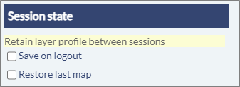 Fig: Defining a new Bookmark - The Session State tick-box option Save on Logout will, if checked, retain the last zoomed map location (screen center X;Y position and map scale), and return to the same map location and zoom scale when the user opens a new enlighten session.