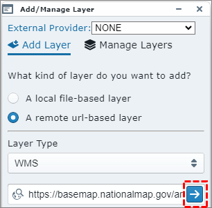 - Select the blue arrow next to the entered URL to load the Available WMS Layers.
