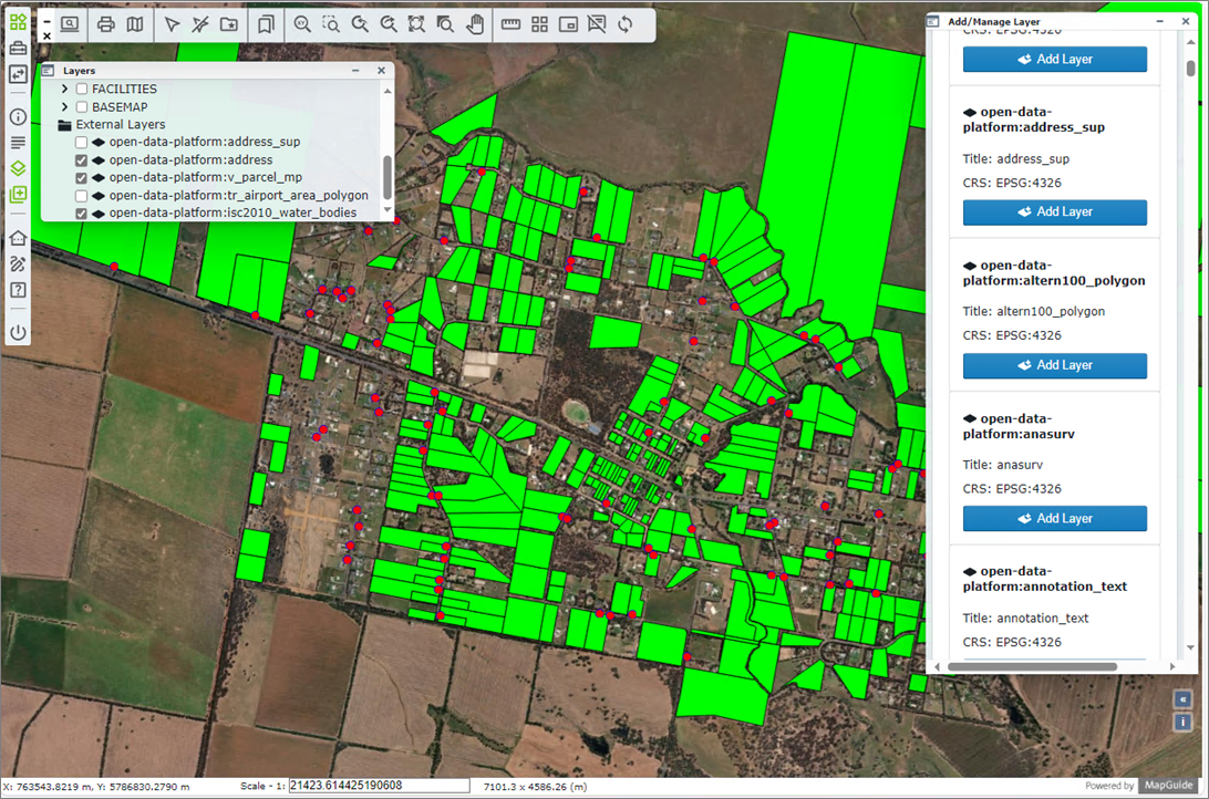Fig: WMS Layer added to Layers pane and displayed in the base map - Some WMS layers have been set to display a specific scales, so if the WMS layer does not display, check the metadata to consult specific instructions.