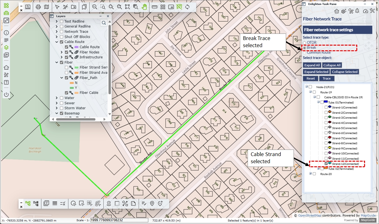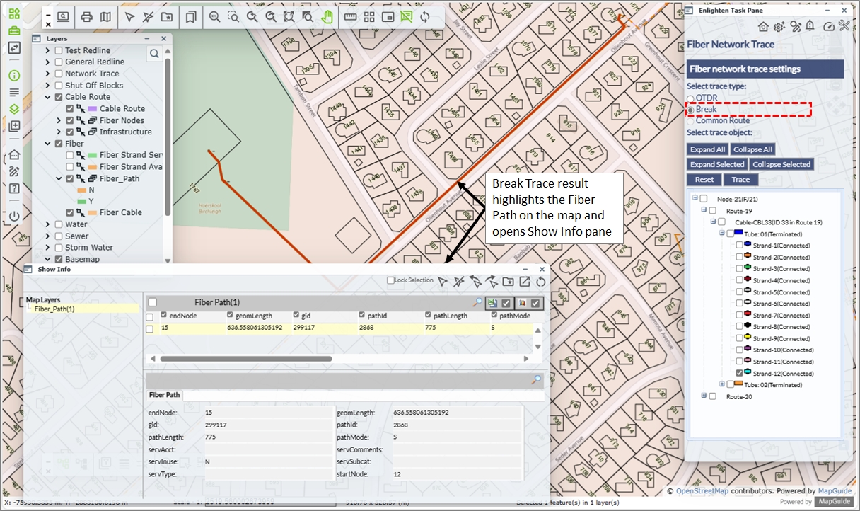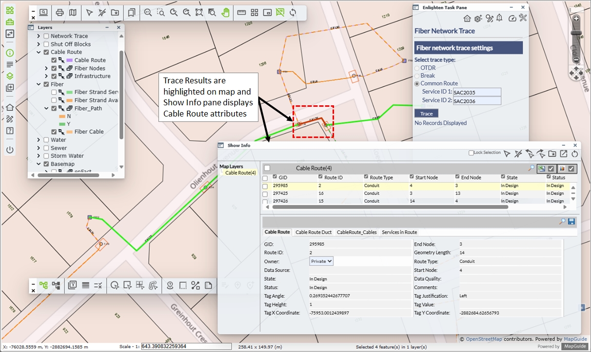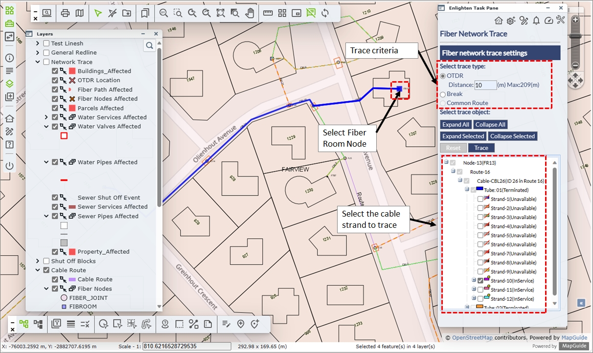 Network Tracing is also now available for Fiber utilities, which incorporates powerful capabilities for the end user and becoming extremely beneficial for organizations in a modern-day context. Fiber network tracing can start with a Fiber node, Fiber Cable or Cable Route and work through the network to display desired results, based on the trace option selected. For this network trace to function select the Fiber node to perform a network trace on.